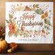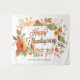 Ce magnifique fond de photobooth de fête pour Thanksgiving présente une charmante bordure de feuilles d'automne et de fleurs automnales peintes à l'aquarelle autour de votre élégant message 'HAPPY THANKSGIVING' en cursive. Personnalisez avec le nom de votre famille ou de votre entreprise en marron clair sur fond de tons terreux orange et jaune sur cette jolie tapisserie.