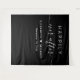Simple tapisserie de fond noire pour réception de mariage ou fête avec « Happily Ever After » dans une typographie blanche simple et un script blanc tendance avec fioritures, vos prénoms et la date de l'événement.