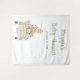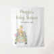 Cette tapisserie de photomaton pour baby shower présente une illustration adorable de bébés animaux (lion, zèbre, éléphant, singe et girafe) entassés dans un véhicule de safari. Le nom de la future maman est écrit dans une police d'écriture verte armée coordonnée et vous pouvez ajouter la date de la fête et du texte sur le véhicule (par exemple, "C'est un garçon") ou laisser vide. La moitié inférieure de la tapisserie est laissée vide pour que vos invités puissent poser pour une photo.