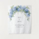 Elégante et élégante hydrangée bleue toile de fond pour rendre vos souvenirs derniers. Ce design est composé d'un arrière - plan blanc, d'une arche à fleurs d'hydrangée bleue, de noms de couple, de date mariage et de texte de hashtag. Customisez ce design spécial et unique pour en faire votre propre.