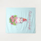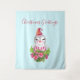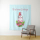 Tapisserie au design mignon et fantaisiste avec un adorable pingouin portant un chapeau de santa rouge. Derrière un bouquet de fleurs aux sucres de canne rayés roses et blancs.