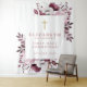 Cette élégante toile de fond florale rose première sainte communion peut être personnalisée avec vos informations dans la typographie rose poussiéreuse moderne. Conçu par Thisisnotme©