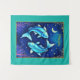 Tapestry in a Pisces illustration featuring two turquoise blue fish swimming in opposite directions against a starry, deep blue background. A crescent moon and stars enhance the celestial theme, evoking the imaginative spirit of the Pisces zodiac sign.