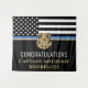 Cette conception comprend un drapeau de la police avec des rayures noires et blanches, ainsi qu'une fine bande bleue. Customisez avec le nom de l'agent d'application de la loi, du shérif, du capitaine ou du chef qui prend sa retraite ou qui est diplômé. Une excellente façon de féliciter le nouveau retraité ou diplômé pour sa retraite ou son diplôme de l'académie de police.
