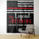 Cette conception comprend un drapeau de pompiers avec des rayures noires et blanches, ainsi qu'une fine bande rouge. Le texte "La légende prend sa retraite" se trouve au-dessus du nom du pompier, lieutenant ou chef de l'application de la loi qui prend sa retraite. Célébrez en style avec cette grande bannière en arrière-plan que vous pouvez prendre des photos devant!