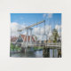 Peinture de la rue et pont traditionnel hollandais levant en bois dans le village de pêcheurs de Volendam, Hollande du Nord, Pays-Bas.