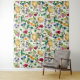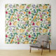 Tenture Poulets et fleurs sauvages sur blanc cassé