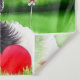 Un tableau d'aquarelle claire si mignon et adorable d'un chien Chih Tzu noir et blanc allongé à l'extérieur du parc. Un coeur rouge devant et avec un ballon de coeur rouge avec une typographie blanche "Forever Yours" et un empreinte de patte blanc.