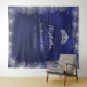 Une tapisserie pour une fête de Quinceañera, 15e anniversaire girly et glamour. Un fond bleu marine, la couleur bleue est inégale. Décoré de fausse poussière de paillettes argentées. Personnalisez et ajoutez un nom, âge, date.