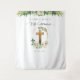 Fond de cabine photo pour la première communion élégant. Design neutre, convient aussi bien aux filles qu'aux garçons. Bel affichage qui rassemble votre thème, excellent comme pièce décorative en tant que toile de fond pour les photos ou derrière la table des desserts. Belle croix dorée avec arche dorée avec verdure et fleurs blanches et jaunes dorés. Bordure décorative élégante sur le dessus avec feuilles de verdure et quelques fleurs dans un mélange de tons verts, blancs, dorés, jaunes et gris. Cartes d'invitation pour la première communion coordonnées ainsi qu'une grande variété de produits pour l'événement disponibles. Fait partie de notre "Collection de papeterie Eternity Greenery and Floral".
