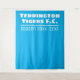 Pour une soirée de présentation d'équipe sportive ou une soirée de trophée de club de football. Un mur de fond suspendu aux couleurs du club et avec le nom de l'équipe sportive ou du club de football. Toile de fond photographique pour la soirée des récompenses de l'équipe sportive. Bleu clair et blanc. Bleu ciel.