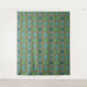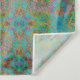 Un motif dynamique et symétrique occupe l'espace, avec des motifs circulaires complexes dans différentes nuances de vert, bleu et rose. Les éléments répétitifs créent un effet kaléidoscopique qui capte l'attention du spectateur.