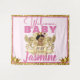 Fond de Photo Princesse Africaine Royale Rose|Or Pailleté présente une adorable princesse ethnique portant une couronne dorée ; entourée d'un fond doré scintillant et d'un cadre rose avec texte rose. Parfait pour une Baby Shower de Princesse Royale ou une Annonce de Naissance de Princesse Royale ©2021 Miss Sassy Party Designs