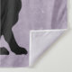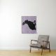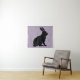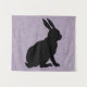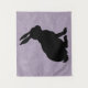 Cette tapisserie murale est un mélange marbré de violet et de blanc avec le profil latéral d'un lapin lapin lapin en silhouette noire assis.