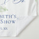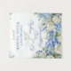 Design de douche nuptiale élégant et féminin "quelque chose de bleu avant moi" avec des arrangements floraux aquarelles peints de fleurs d'hydrangée bleue, de verdure et de roses blanches.