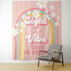 Eight est une Vibration ! Bannière d'anniversaire rétro inspirée de la 8e année avec des polices et des couleurs des années 70, arc-en-ciel et marguerites en rose