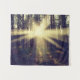 Cette photo comporte une forêt de pin éclatant avec des rayons de soleil.
