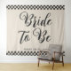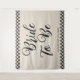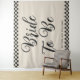Fond de toile de fond pour la future mariée, avec une bordure à carreaux marrons et crème dans un style groovy.