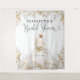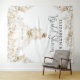 Fond de shooting photo pour mariage avec robe de mariée moderne en or blanc et cheveux blonds, calligraphie élégante en forme de cœur