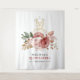 Décorez le lieu de votre fête avec un fond de robe de silhouette et de fleurs fausses en or pour votre Quinceanera spéciale, fête de 15e anniversaire. Avec un fond blanc simple décoré de fleurs roses et or rustiques à l'aquarelle, c'est sûr d'être l'un des endroits pour prendre des selfies.