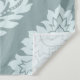A vintage style decorative damask surface pattern influenced by rococo classical design in duck egg blue color detail on a teal background.