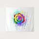 Grand rose fleuri avec pétales arc-en-ciel sur arrière - plan blanc, peint sur des éclaboussures de peinture colorée et lumineuse. 3d