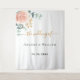 Un fond blanc chic. Décoré avec une rose dorée et des feuilles d'eucalyptus rose poudré aquarellées (rose), des brindilles, de la verdure et des feuilles dorées fausses. Personnalisez et ajoutez le nom de la mariée et du marié ainsi qu'une date. Lettres noires et dorées. Peut être utilisé comme bannière de bienvenue de mariage, comme décoration murale de fête ou comme toile de fond pour photobooth.