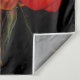 Photographie en gros plan d'une rose orange pêche vibrante, en contraste saisissant sur un fond noir dramatique.