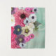 TENTURE ROSES BLANCHES ET ROSES , FLEURS D'ANÉMONE , BLEU