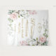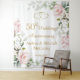 Tapisserie pour les 50 ans de mariage avec des roses rosâtres, du feuillage vert et des coeurs unis. Personnalisez avec vos noms et date.