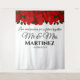 Panneau de bienvenue de mariage festif, décoratif et coloré et fond pour mur de photos, conçu pour un couple passionné qui aime les roses rouges passionnées, brillantes et audacieuses comme leur amour l'un pour l'autre. La police de caractères traditionnelle et romantique combinée à une typographie serif plus simple la rend traditionnelle et élégante. Tout le texte est personnalisable pour que vous choisissiez votre message de bienvenue personnalisé pour vos invités. Vous pouvez également changer la police pour une autre qui pourrait correspondre à l'ensemble de votre style et décoration de mariage.