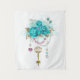 Tenture Roses turquoise avec touches