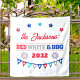 Tenture Rouge blanc et BBQ 4 juillet nom de famille feux d