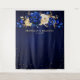 Elégant bleu royal or thème mariage photo arrière-plan / photo stand prop avec élégant bouquet de bleu royal, Marine, or, jaune des bourgeons de fleurs roses et des feuilles d'eucalyptus. Veuillez me contacter pour toute aide sur la personnalisation ou si vous avez besoin d'un autre produit avec ce design.