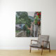 Peinture d'une rue étroite avec des bâtiments en pierre, des fleurs, du linge suspendu et des escaliers dans la vieille ville de Dubrovnik. Linge suspendu à une façade croate typique. Rue étroite avec des bâtiments en pierre blanche.
