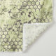 Une base verte à la sauge poussiéreuse est superposée avec une myriade d'éléments graphiques dans différentes opacités, créant profondeur et intérêt visuel.