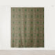 Un motif géométrique complexe présente des couleurs vives, dont des verts, des violets et des bleus, tissés de façon complexe dans un design symétrique répétitif. De petits carrés et cercles forment un effet kaléidoscopique, créant une mosaïque qui attire l'oeil.