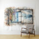 Capture the charm of coastal living with this tranquil watercolor design, featuring a weathered window framed by soft lace curtains that gently part to reveal a peaceful seaside view. A seagull rests quietly on the windowsill railing, gazing out toward calm ocean waves under a serene sky. The window box overflows with blooming lavender, ivy, and pink blossoms, adding a burst of color and life to the composition. Subtle textures in the aged wall and wooden frame enhance the rustic cottage aesthetic, while the soft, fluid brushwork evokes a dreamy, romantic feel. Perfect for those who love cozy beach houses, vintage decor, or serene nature scenes, this artwork brings a quiet coastal atmosphere into any space. Inspired by slow mornings by the sea, this design invites reflection and relaxation. AI generated artwork.