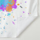 Le mot hébreu « shalom » (signifiant 'paix' mais aussi 'bonjour') sous une forme artistique sur un fond coloré de projections de peinture.