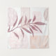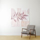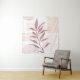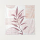 An abstract watercolor featuring patterned shapes and a botanical in a palette of maroon and soft calming colors.