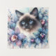 Tenture Siamese Cat Among Orchid Flowers Watercolor