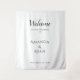 Bannière de fond Mariage de script de bienvenue simple et élégant. Design simple avec script tendance en noir. Personnalisez tout le texte sur la bannière, les noms de mariée et de mariée et la date du mariage.