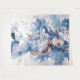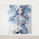 Jolie sirène de style anime avec des cheveux bleus et une tapisserie de robe blanche et bleue.