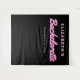 Tapisserie de photomaton de fête de bachelorette cool avec "Bachelorette" écrit en écriture rose chaud avec un effet de lumières néon sur fond noir. Vous pouvez personnaliser avec son nom et la date de la fête. Un espace vierge en bas fournit un espace pour que les invités prennent des photos devant le décor.