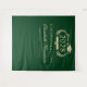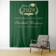 Élégante fête de graduation verte et or accueille sur fond de tapisserie "Classe de" dans une couronne de laurier incorporant un casquette et un diplôme, le nom du diplômé dans un script formel, et "Félicitations" et leur nom d'école dans la typographie classique moderne.