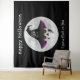 Créez votre propre fond pour photos pour la soirée d'Halloween avec cette scène de tapisserie effrayante "Joyeux Halloween". Le design présente un crâne de sorcière effrayant portant un chapeau pointu noir "Trick or Treat" et une pleine lune sur fond noir. Les citations d'Halloween "Joyeux Halloween" et "Je vous jette un sort" sont écrites en police blanche. Ce fond de tapisserie est disponible en plusieurs tailles différentes. Affiché ici en taille extra large.