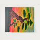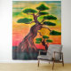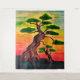 Le turquoise du ciel du soir met en valeur les silhouettes de deux baobabs. Ils grandissent ici pour toujours, pour les générations âgées et les jeunes. Le graphisme est magnifique sur la tapisserie.