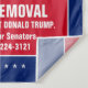 Je soutiens la destitution de la conception de Donald Trump, président. Faites savoir au monde que vous êtes pour la mise en accusation et la destitution de Donald J. Trump, président, avec ce fond de selfie politique et cette tapisserie de fond de photographie. Et assurez-vous d'appeler vos sénateurs et de leur faire savoir où vous en êtes. Description de la conception : un fond bleu, avec cinq étoiles en haut et en bas. Au centre, une section rouge avec une bordure blanche en haut et en bas. Au milieu de la section rouge, les mots « Je soutiens la destitution du président Donald Trump. Appelez vos sénateurs (202)224-3121 » en police blanche. Répété dans une grille 3x5.