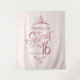 Tapisserie rose gold Sweet 16. Design moderne Sweet Sixteen en rose gold avec un superbe panneau calligraphié. Ajoutez votre propre texte et photo avec l'outil d'édition Zazzle facile à utiliser ! REMARQUE IMPORTANTE : Les détails en rose gold sont une imitation. Aucune feuille métallique n'est utilisée.