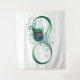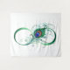 Le symbole de l'infinity with a bright, green, artistic peacock feather on a white background. Tattoo style.